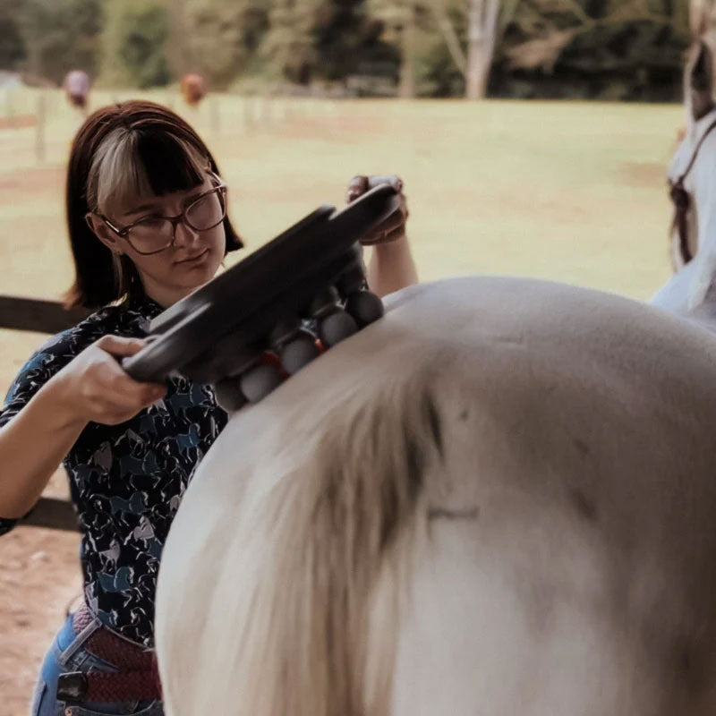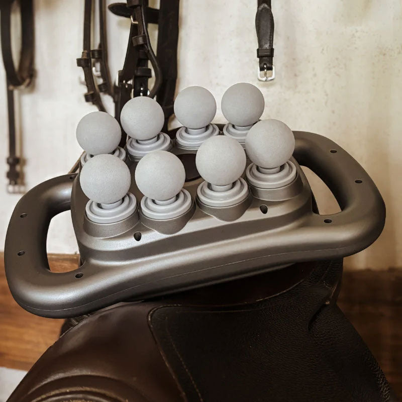 Denne massasjepistolen med åtte hoder er en avansert massasjepistol som er spesielt utviklet for hesteidrettsutøvere, og gir hesten din en banebrytende fordel. Denne kraftige enheten er presisjonskonstruert og har vitenskapelig støtte, og gir dyp, målrettet lindring for å holde hesten din i toppform.