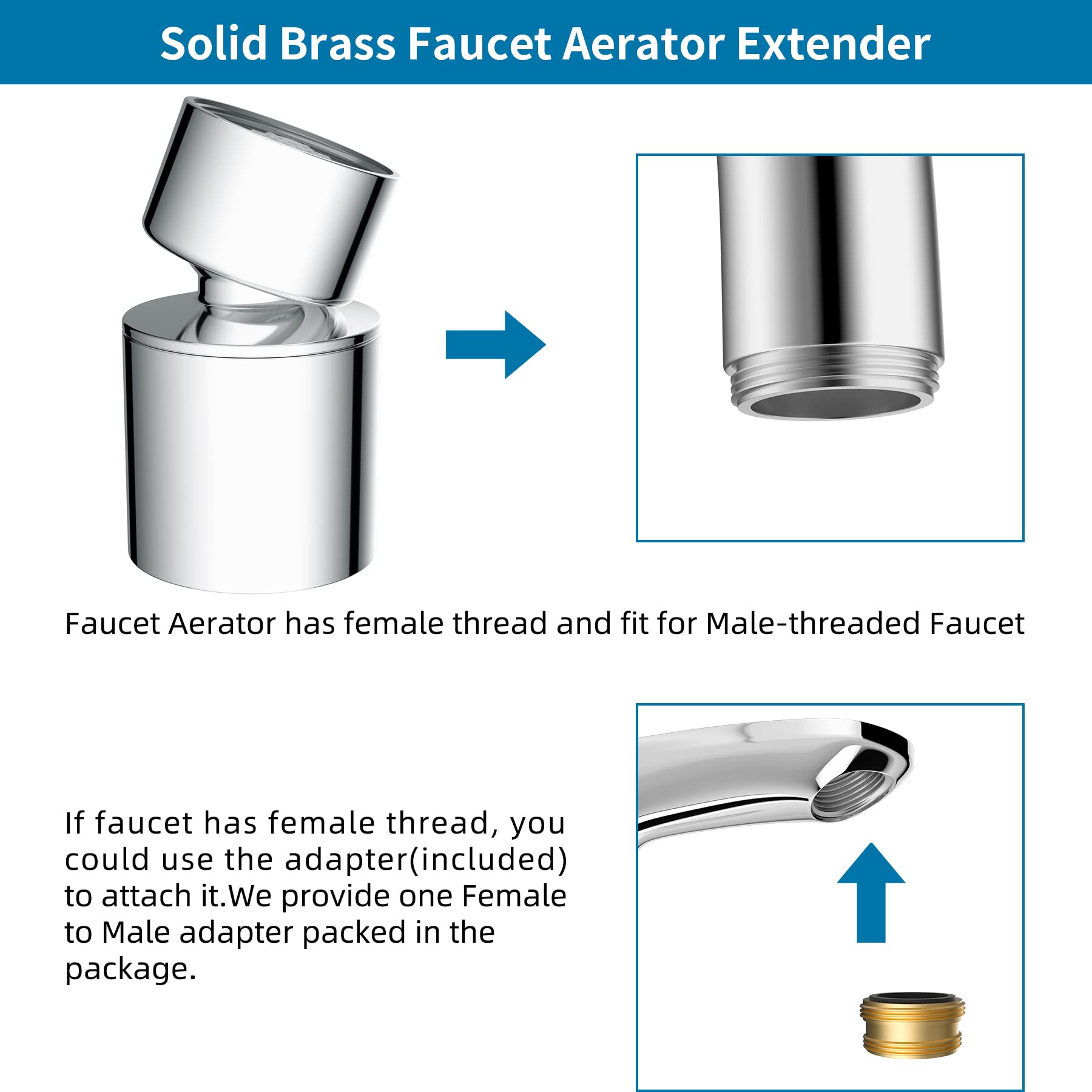 Enkel å installere: Forlengeren til kjøkkenkranen har en innvendig gjenge som passer til kraner med utvendige gjenger. Hvis kranens gjenger har hunngjenger, kan du velge en adapter som passer til den. Vi leverer en adapter fra hunn- til hanngjenger med i pakken.