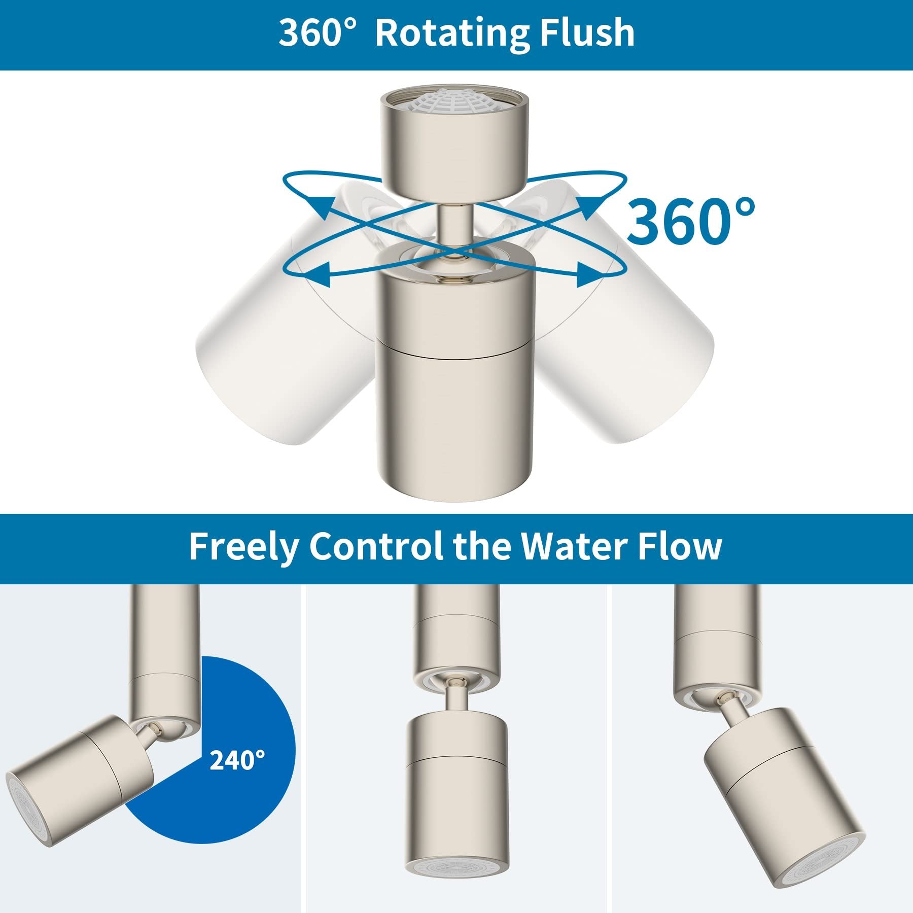 Øk vanntrykket: Det roterende kranluftingsutstyret forhindrer vannstrøm, luft blandes godt med vann, vannet føles mykt, forbedrer vannpotensialet og er lettere å rengjøre. Den kan installeres på kjøkken, vaskekraner, baderomskraner og vaskeromskraner.