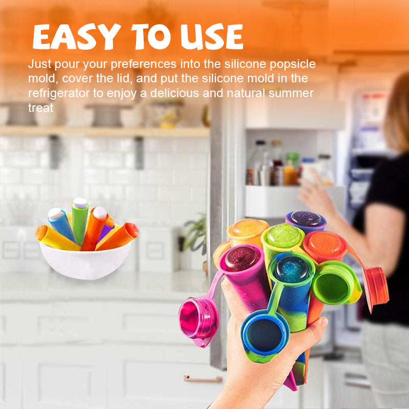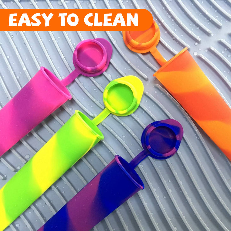 Enkel å bruke: Bare hell det du foretrekker i silikonformen, dekk til lokket og sett silikonformen i kjøleskapet for å nyte en deilig og naturlig sommergodbit. Ispinneformen er enkel å rengjøre. Du kan vaske ispinnemaskinen direkte med vann, eller du kan bruke en børste eller oppvaskmaskin til å vaske den.