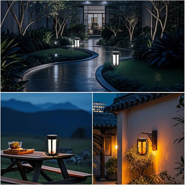 【Oppgradert solcellepanel og lang arbeidstid】 Solcellepanelet til utendørs lanterner for uteplass vanntett er laget av større og mer effektivt monokrystallinsk silisium, energiomdannelsesgraden er opptil 25%, og ladeeffektiviteten er høyere enn andre utendørs sollykter. Solar utendørs lanterner utstyrt med 600mAh høykapasitetsbatteri, absorberer og lagrer mer sollys til elektrisitet. Sollykter utendørs vanntett hengende kan fungere opptil 8-12 timer etter full lading