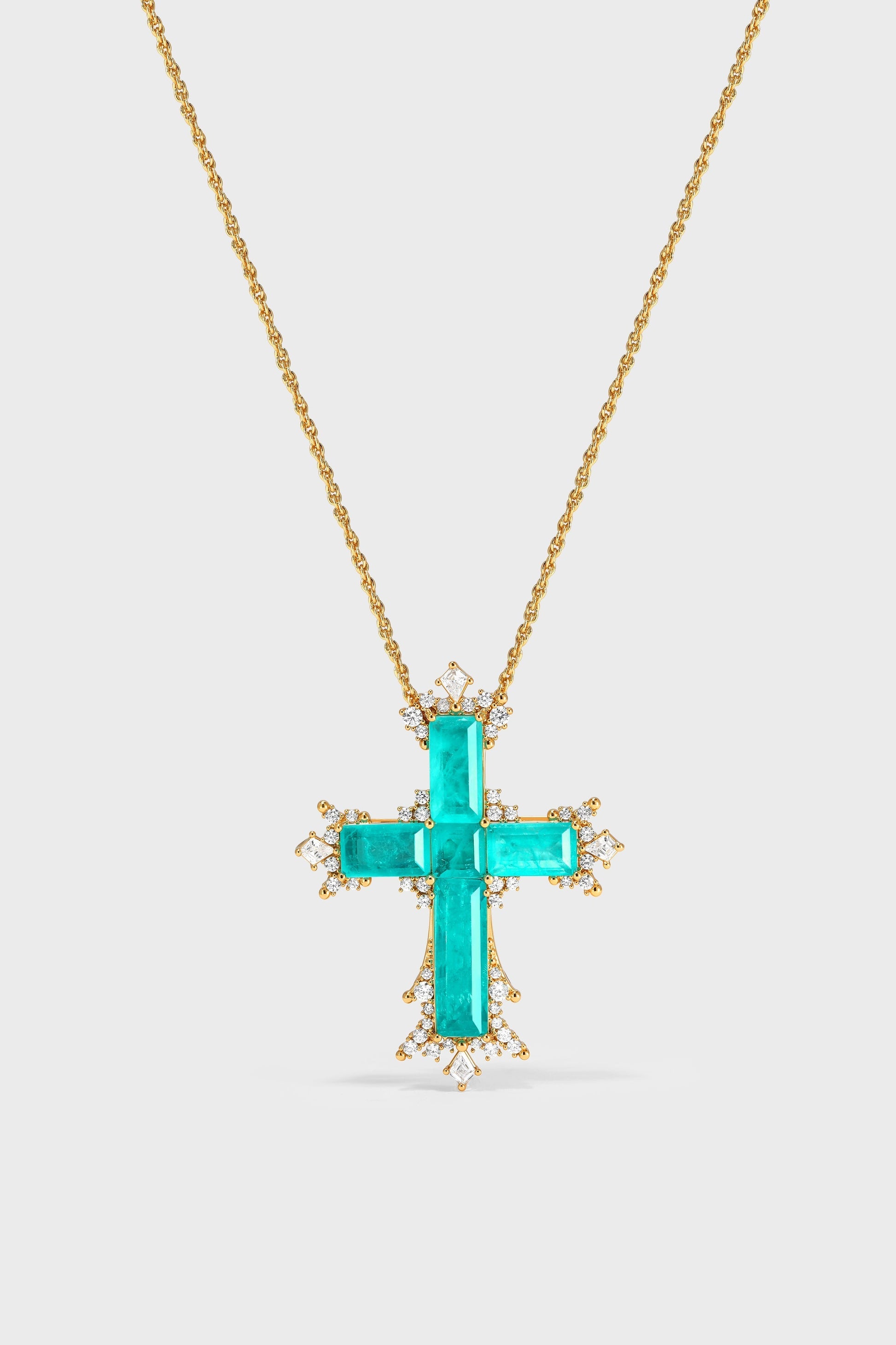 Inspirert av middelhavssommeren fanger korsets silhuett lagene av havblått i en tidløs form. Den Paraiba-fargede, issprukne zirkonen glitrer krystallklart og gjenspeiler bølgenes milde bevegelser og det skimrende tidevannet.