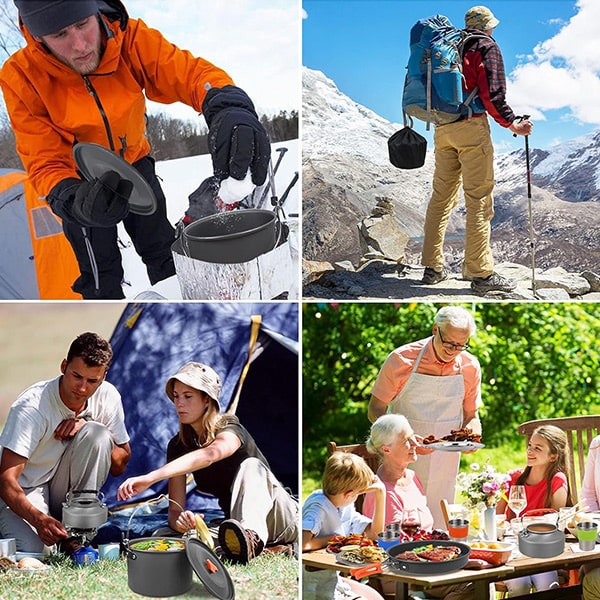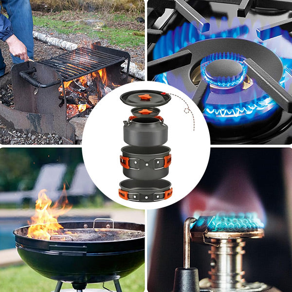 Dette allsidige, kompakte og lette kokekarsettet lar deg lage mat hvor som helst, og er perfekt for hjemmet, reiser og utendørseventyr.✔️