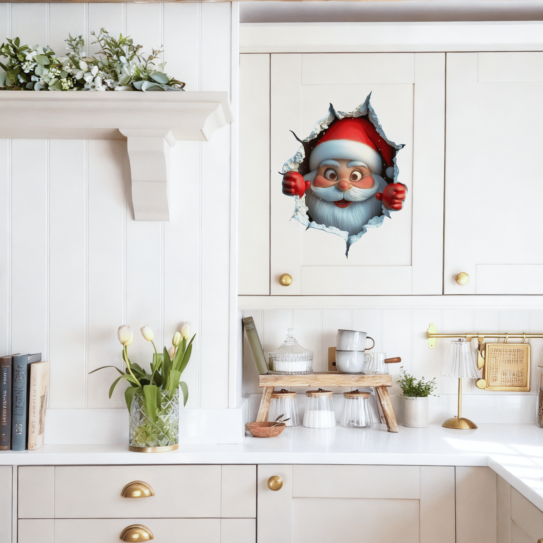 Det ser ut som om julenissen selv bryter gjennom veggen din! En morsom, kreativ vri som øyeblikkelig forvandler kjedelige rom til en gledelig julekulisse.