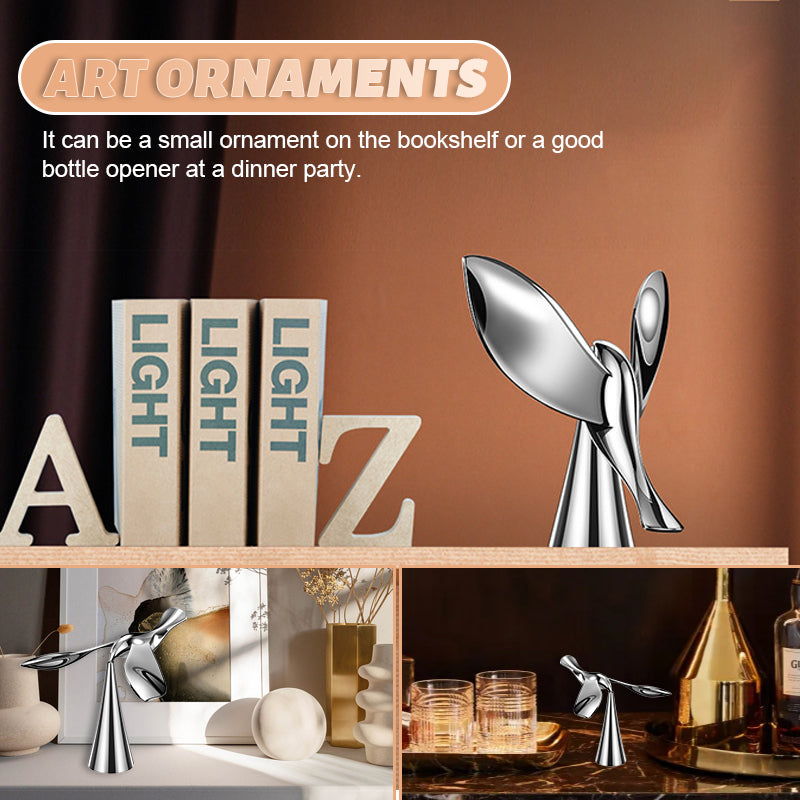 🍻Lett å åpne: Verktøyet leveres med en solid metallåpner som enkelt kan fjerne flaskekorken. Den fugleformede designen gir et ergonomisk håndtak for en sømløs og komfortabel opplevelse.