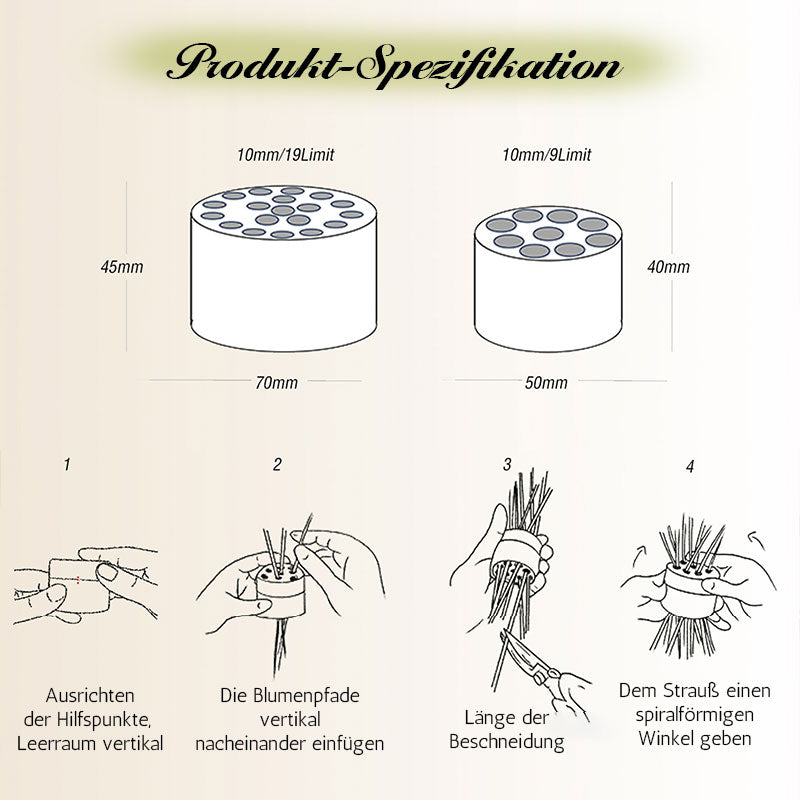 🌈 Allsidig design: Enten du arrangerer en bukett til en spesiell anledning eller dekorerer hjemmet ditt, er disse holderne løsningen. Det allsidige designet gjør at de kan tilpasses forskjellige stilkstørrelser, slik at du kan eksperimentere med forskjellige blomster uten problemer.