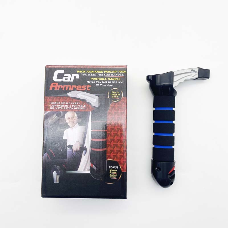 Dette 3-i-1 bilnødverktøyet kombinerer støttehåndtak, vindusknuser og setebelte-kutter i ett kompakt design. Praktisk til daglig bruk – og uunnværlig i en nødsituasjon. Gjør reisen tryggere for deg og dine kjære! 🚗✨